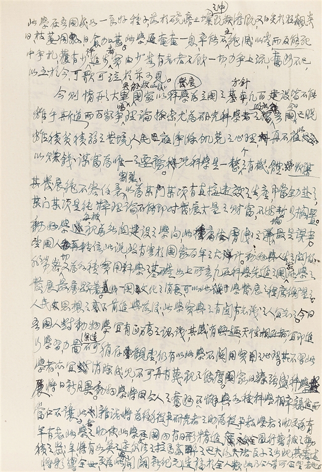 秉志撰写的《发刊辞》部分手稿。