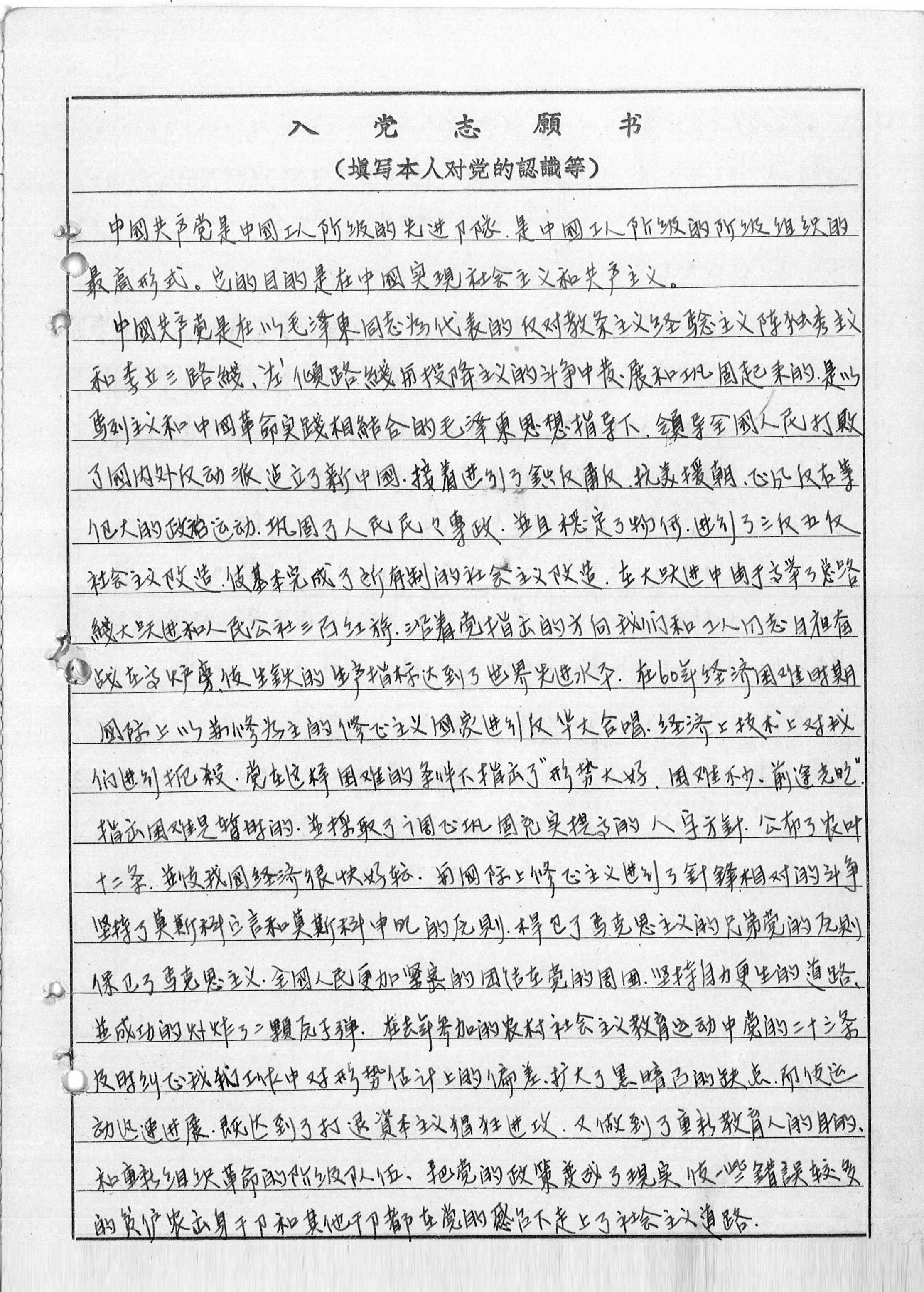 入党志愿书