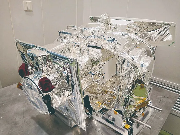 在长春光机所的展厅里,有一台穿着亮闪闪衣服的特别望远镜。“这是太阳X射线-极紫外成像仪的一比一模型,真机搭载在2021年7月5日成功发射的风云三号E星上,是国际上首台具有X射线和极紫外两个波段的太阳成像仪。”陈波说。