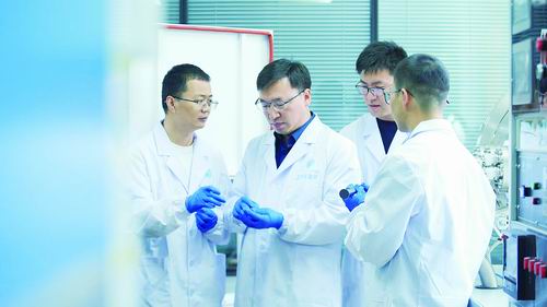 张永胜(左二)在实验室工作。中国科学院兰州化学物理研究所供图