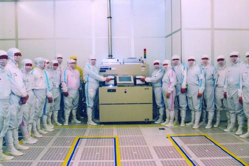 2003年4月,宏力公司生产线投片开工仪式。设备旁右一为邹世昌。