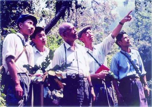 20世纪70年代,蔡希陶(右三)带领学生在热带雨林中调查。